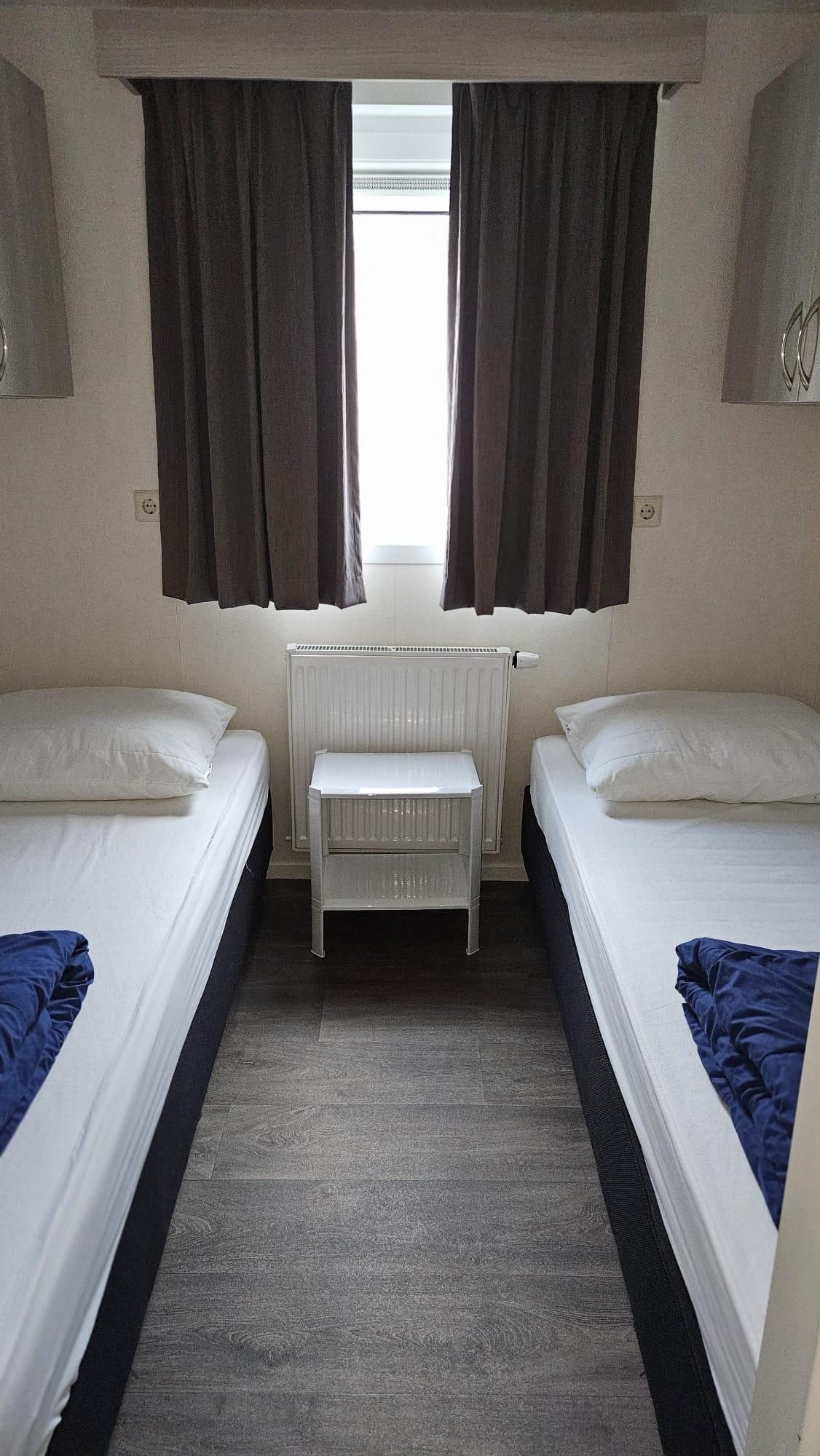 1 slaapkamer met een 2 persoonsbed, 1 slaapkamer met een stapelbed en 1 slaapkamer met 2 x 1 persoonsbed.