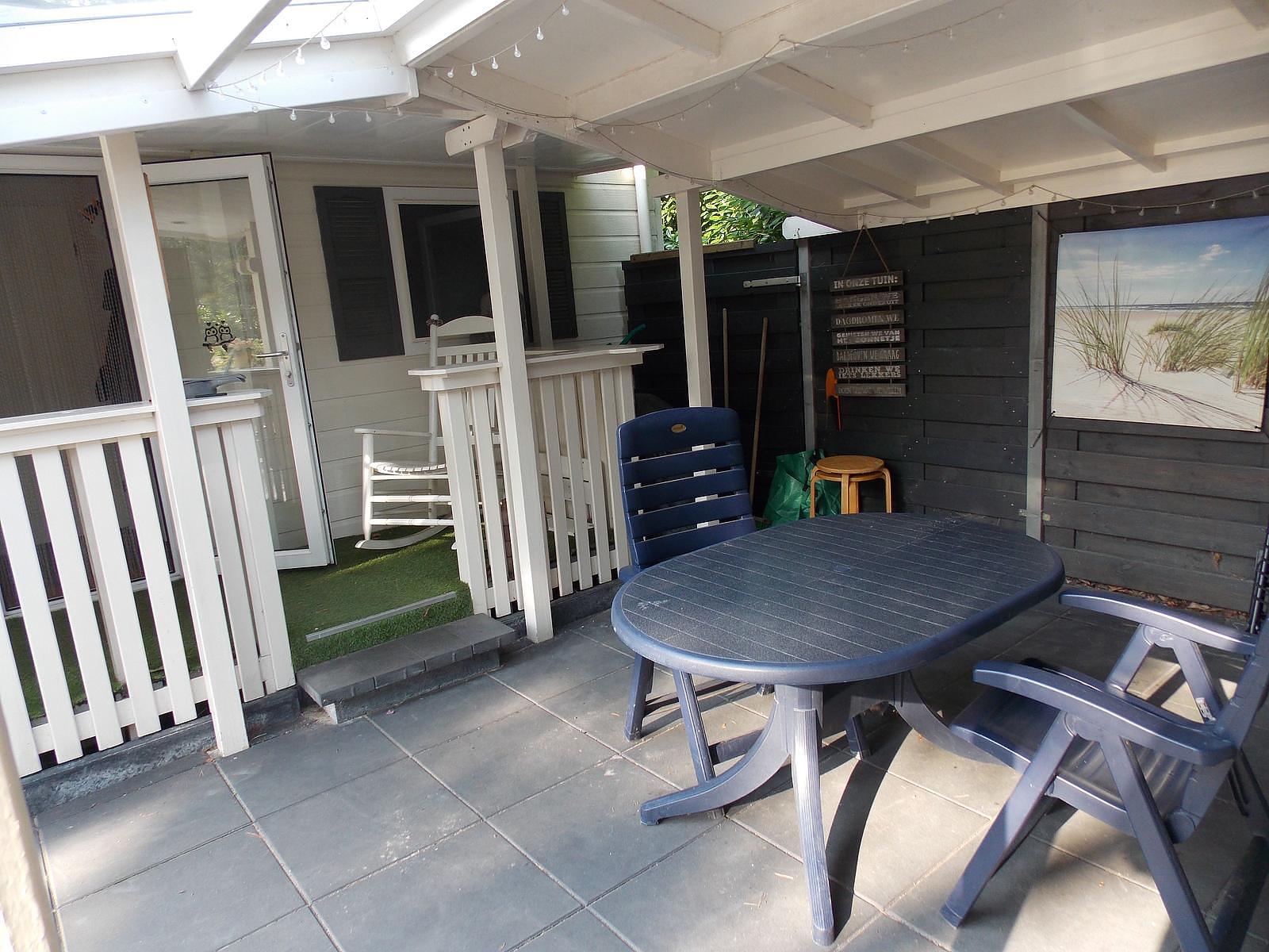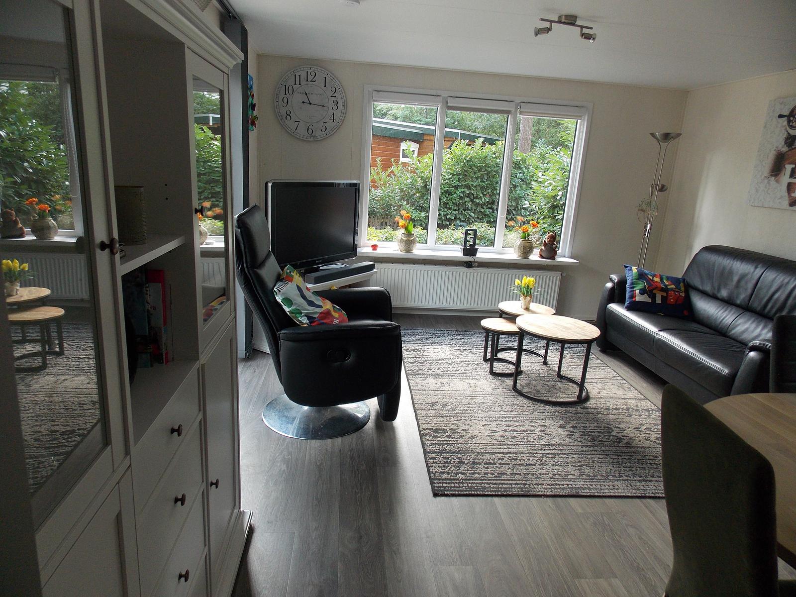 Naast het chalet staat een blokhut, volledig voorzien van stroom, water en afvoer. Hier vindt u een boxspringbed (140 x 200), een grote Bosch koel-vriescombinatie en een Bosch wasmachine/droger combinatie.
