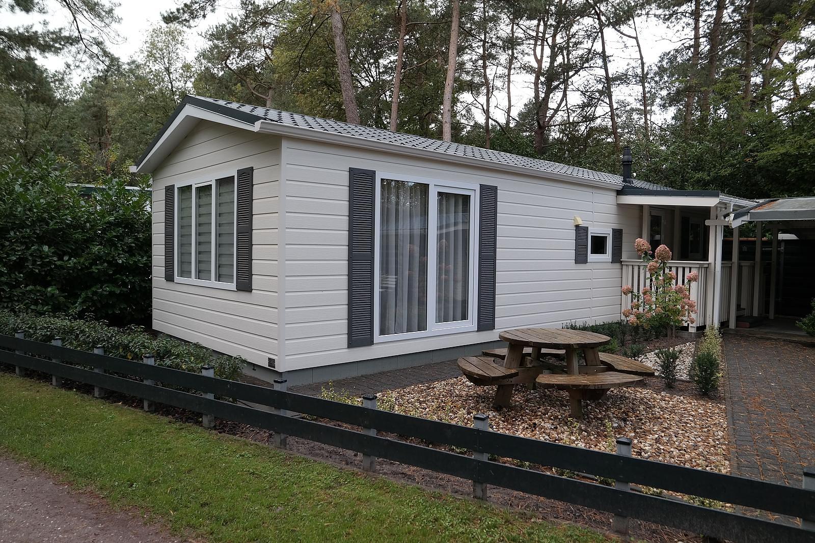 Dit volledig ingerichte chalet, van het gerenommeerde D&P Chaletbouw, staat prachtig gelegen in een bosrijk gebied op het park. Het perceel beslaat circa 175 m² en biedt rust, ruimte en privacy. Het chalet, nieuw gebouwd in 2016, heeft een afmeting van 4 x 12 meter, is winterhard en daardoor het gehele jaar door te gebruiken. Alle ramen, inclusief de schuifpui in de woonkamer, zijn voorzien van dubbelglas en draaikiepramen.